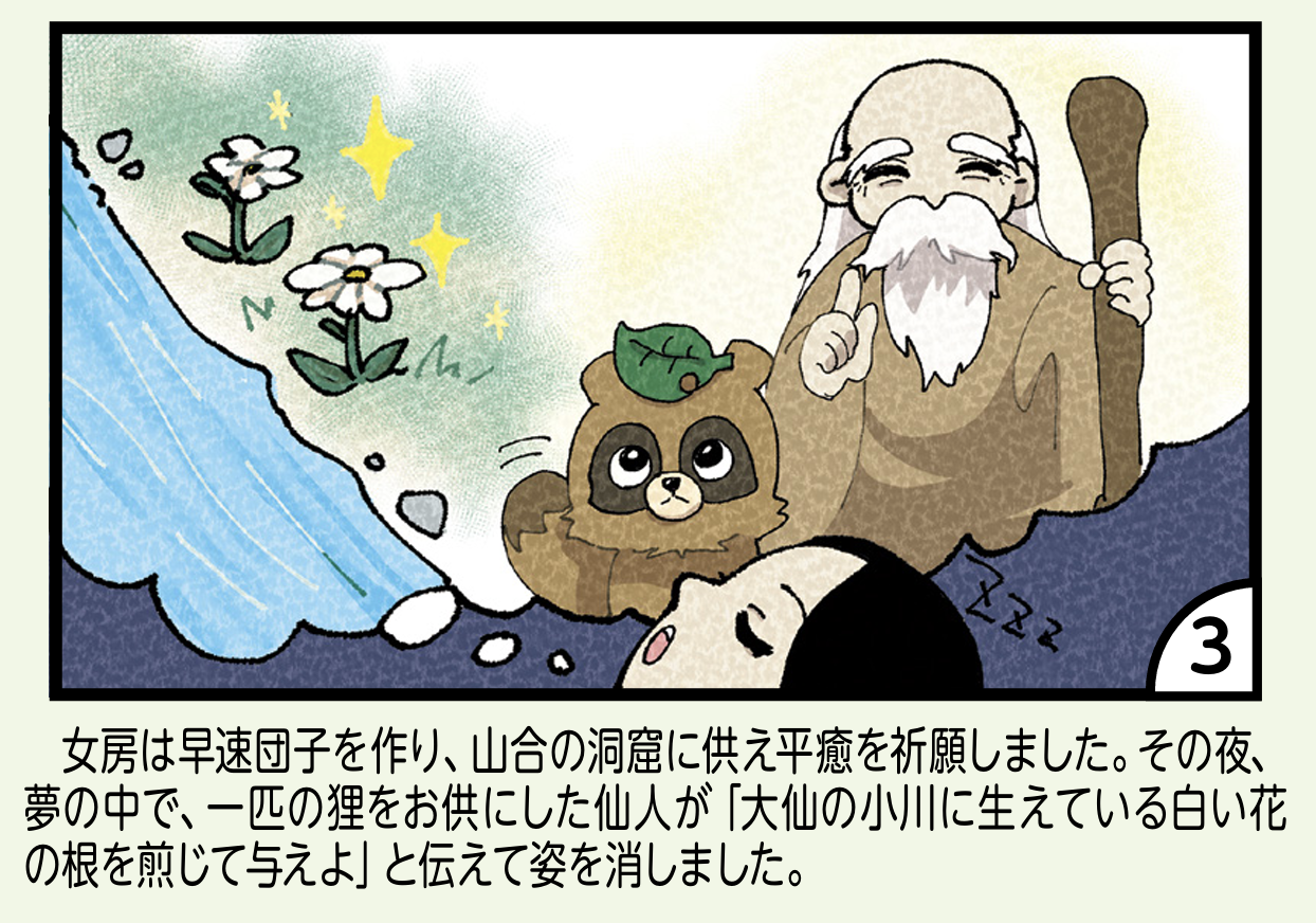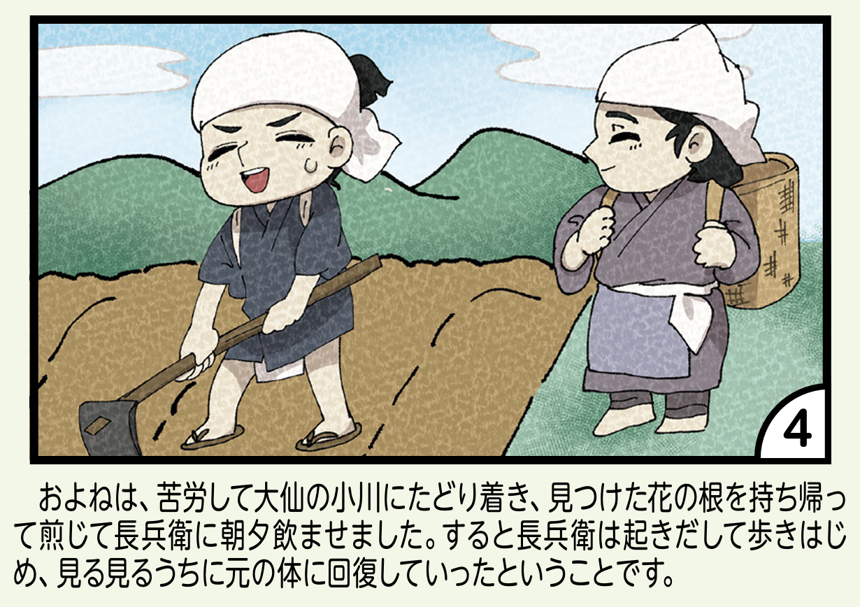 その後のお話ですが、夫婦なかよく暮らし、家はどんどん栄えていきました。 やがて四方の村に伝わりあまた洞窟への参拝者が後を絶たず家々は繁盛し人々は元気に暮らしたそうです。 でも、今ではどこに洞窟があるのか忘れられてしまいました。