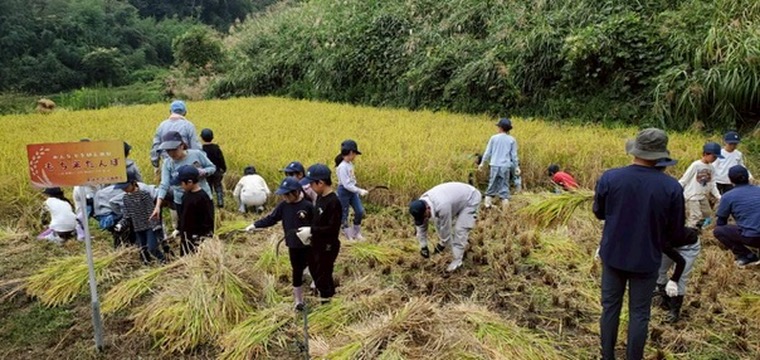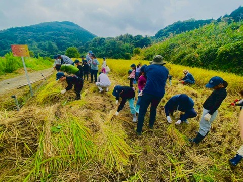 神石高原インターナショナルスクールとの稲刈り体験をしました。